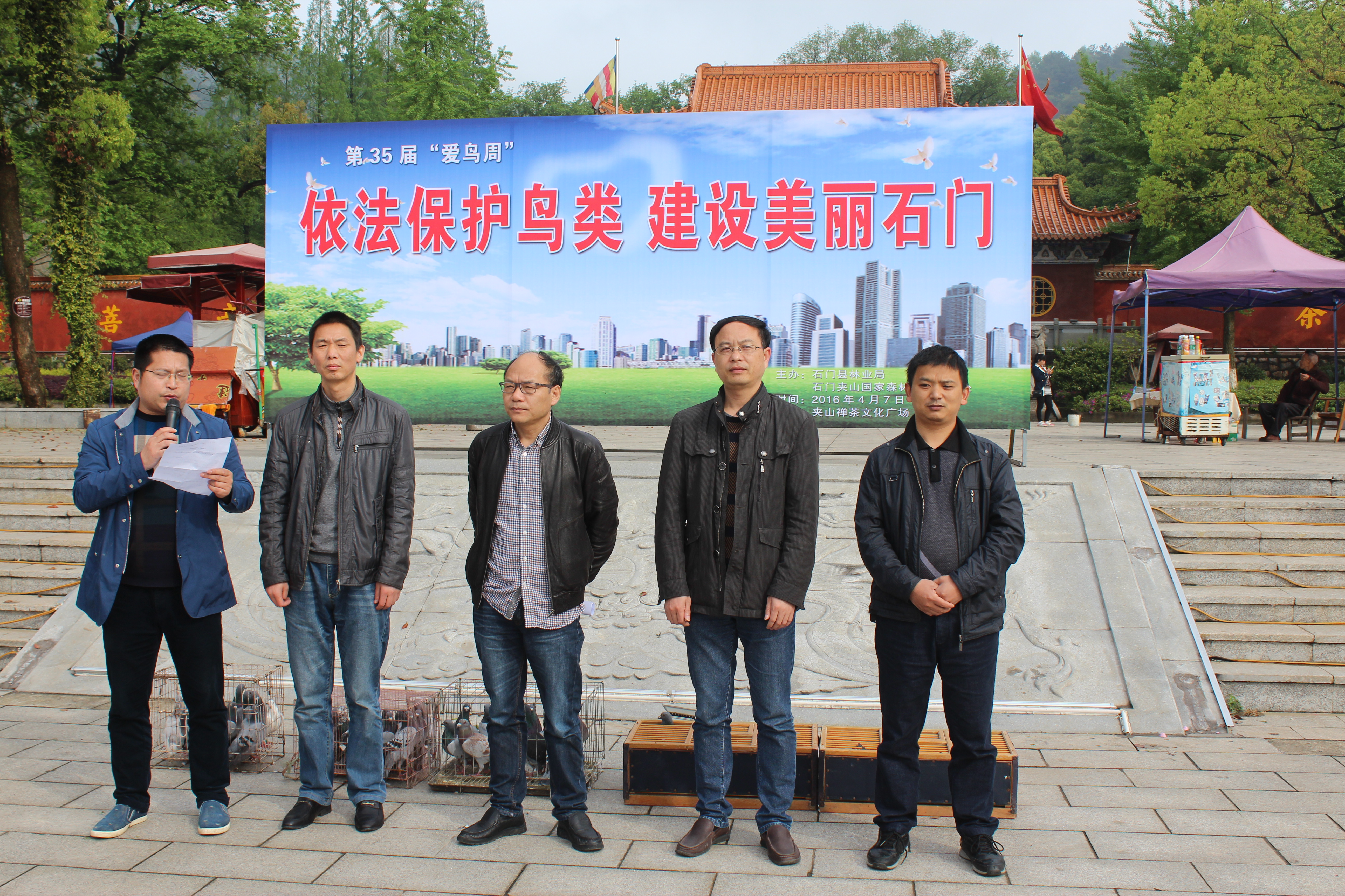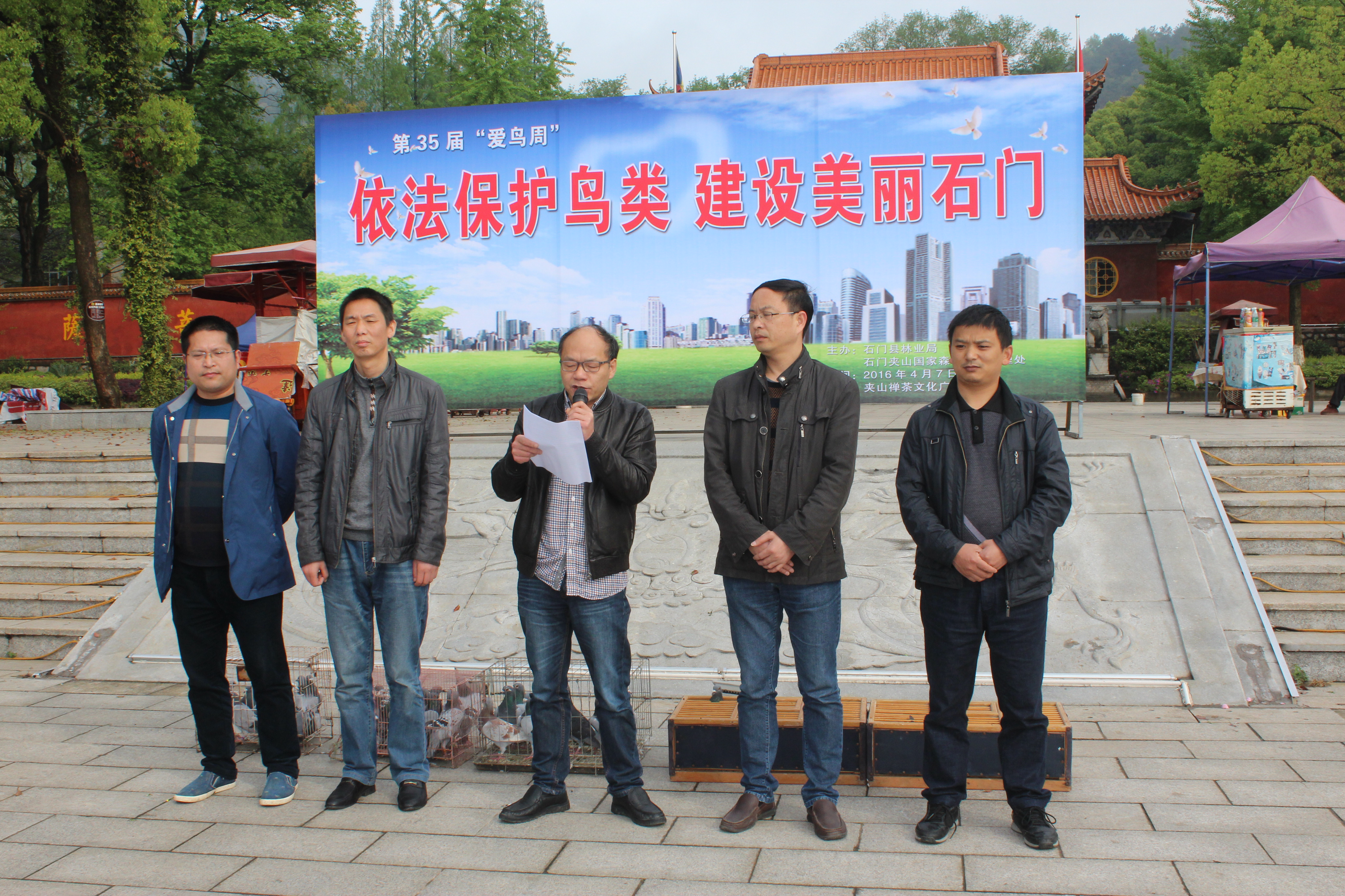 夹山公园领导陈泽云就本届 "依法保护鸟类,建设美丽石门" 爱鸟周主题发表演讲: "进社区、进乡镇、进餐馆、进家庭",宣传爱鸟护鸟,推动全社会掀起关爱自然、关爱湿地、关爱鸟类的热潮,营造全县保护生态、